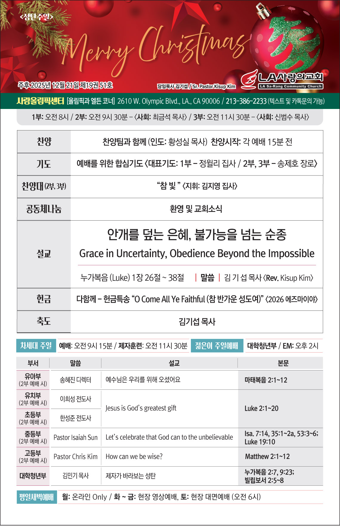 12월 26일부터 30일까지 @ Forest Home Creekside Camp 에서 진행됩니다. 전세계 에…