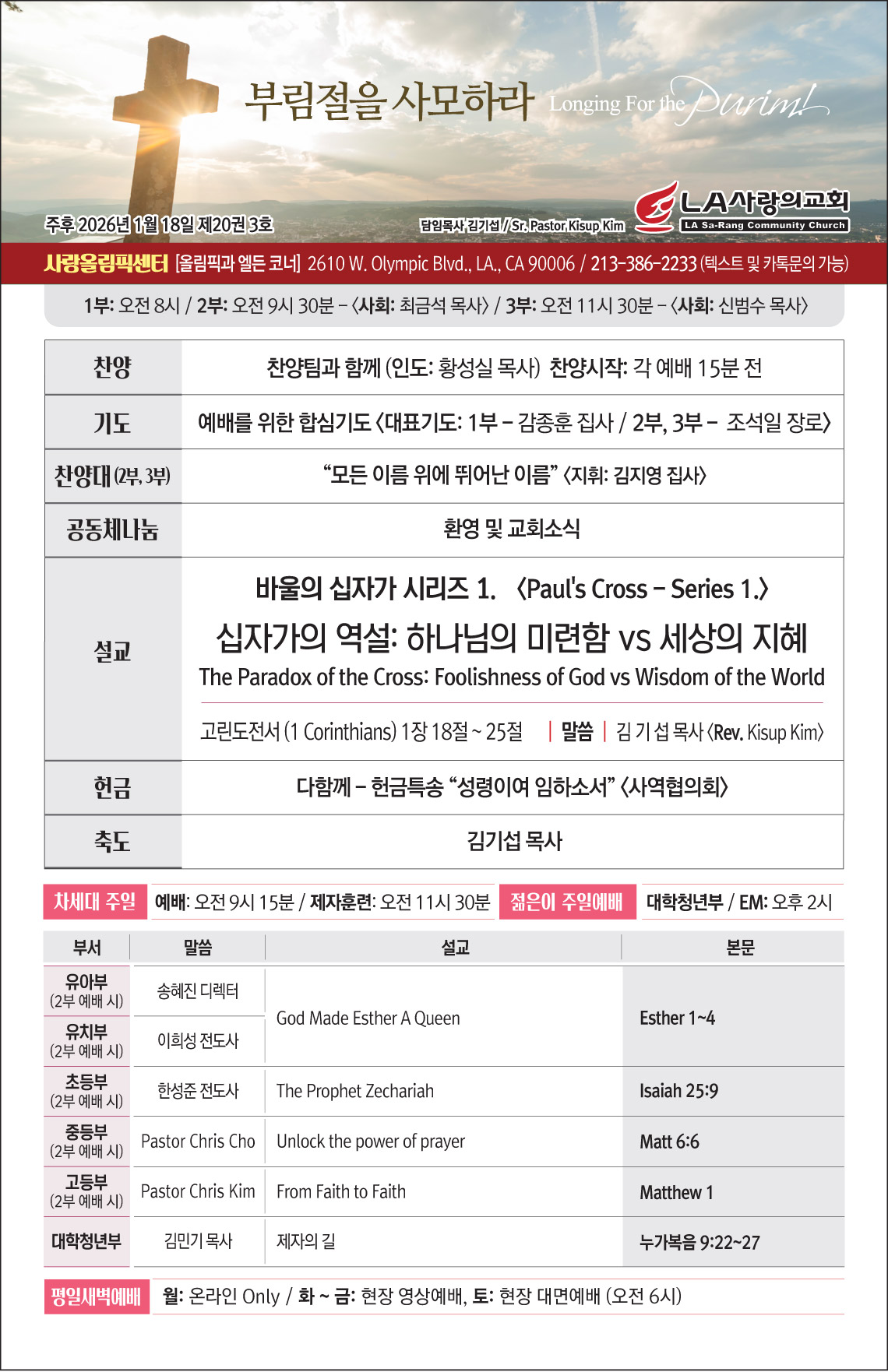 믿음의 3대가 함께 드리는 제20차 신년특별새뜻부흥회 "부림절을 사모하라"