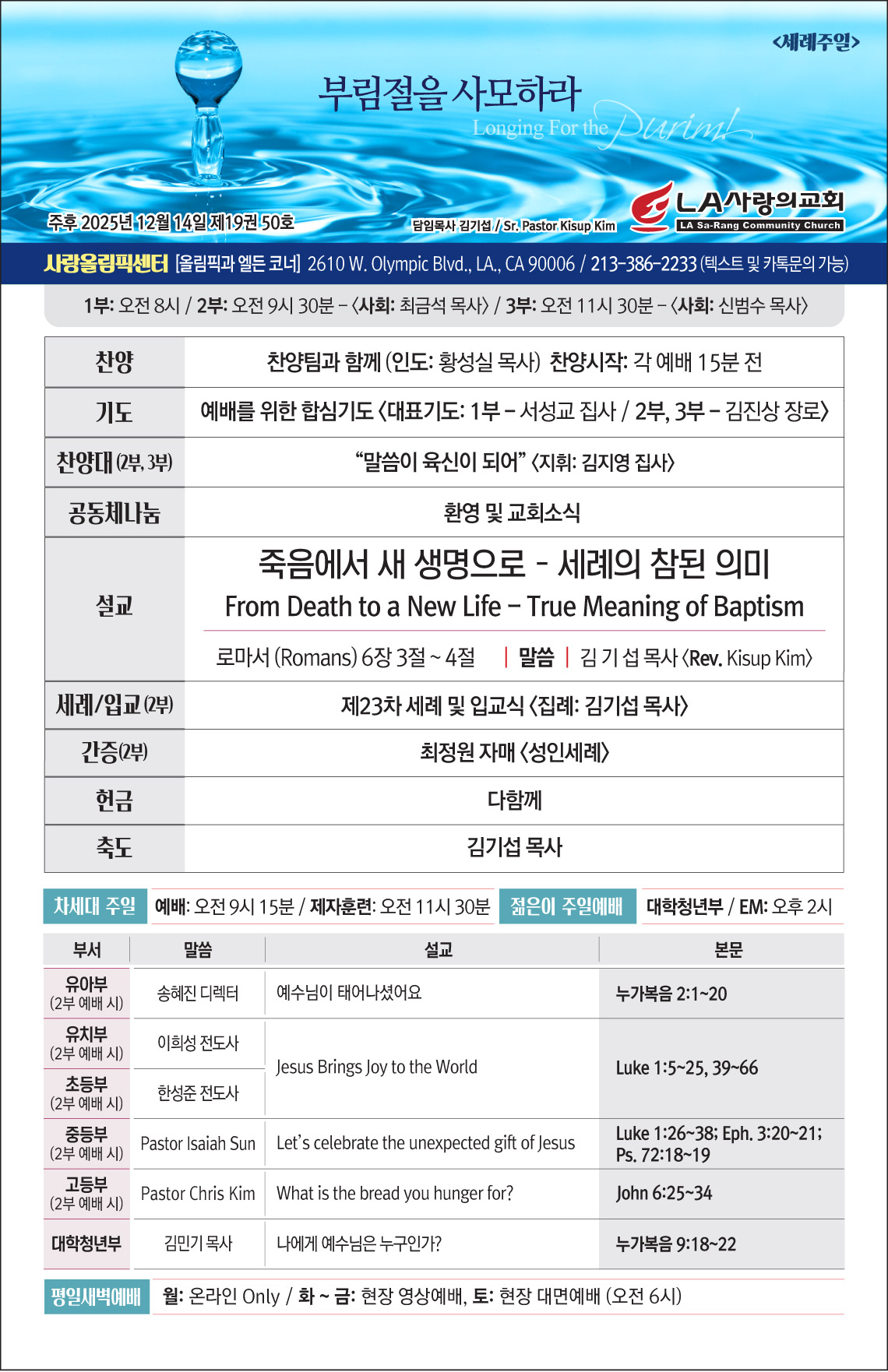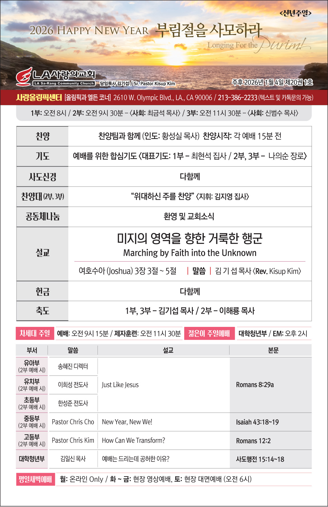 - 준비된 헌금을 예배 중 헌금 시간에 드린 후 주중에 교회(2610 W. Olympic Bl. LA., CA 900006)로 발송해 주십시오.