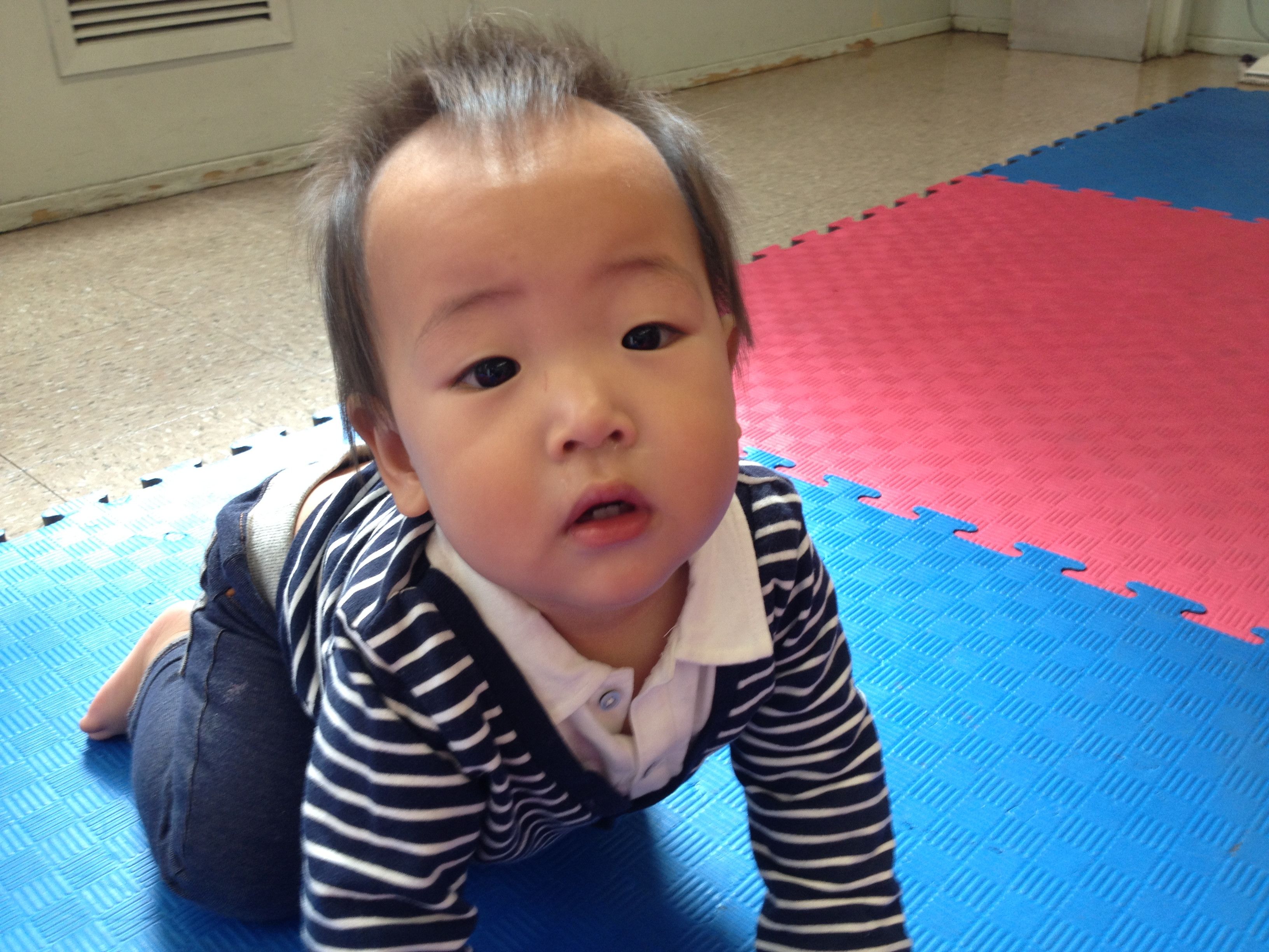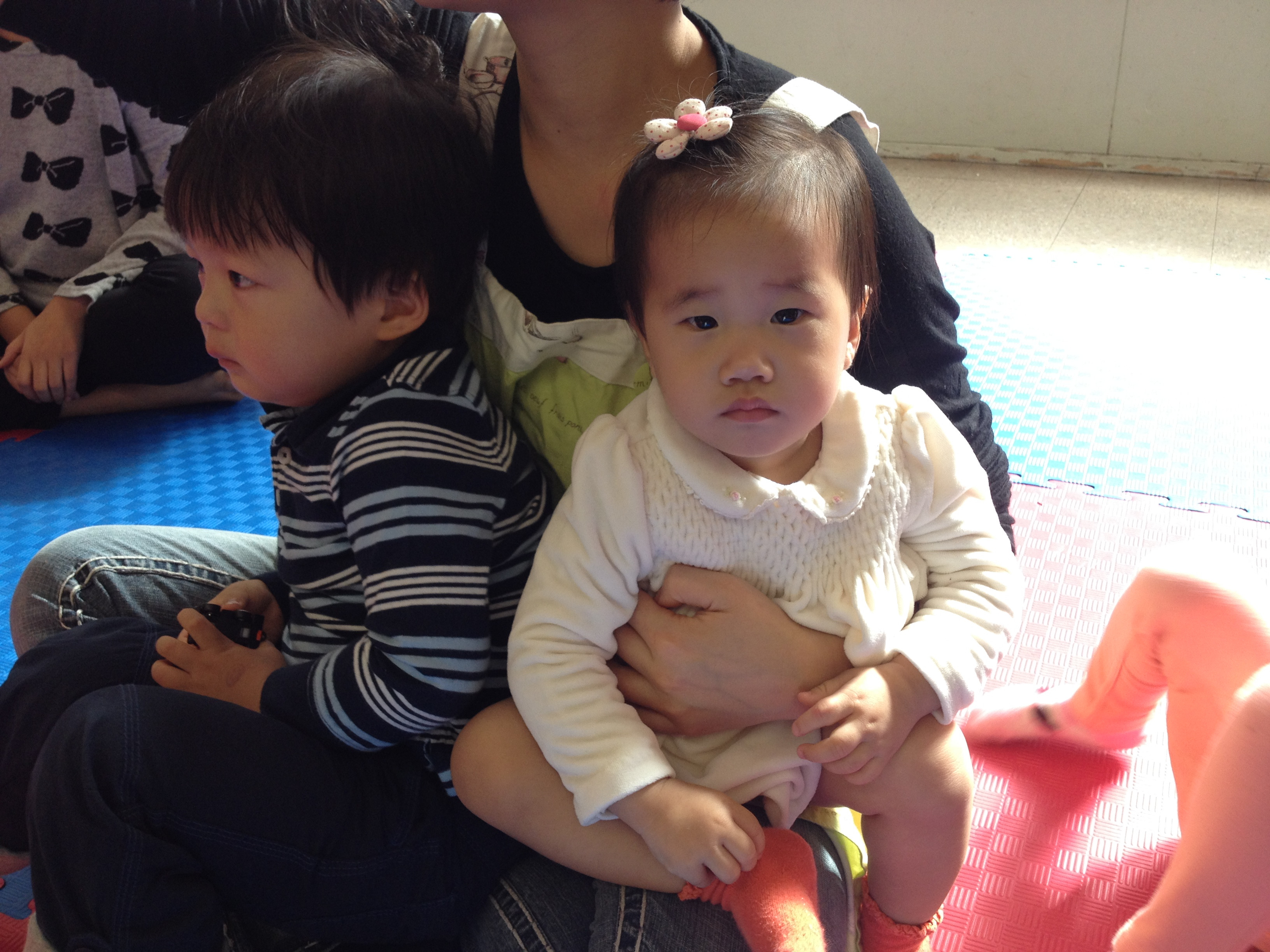 오늘은 새로운 장소에서 첫 예배를 드렸습니다. 돌이 갓 지나서 영아부에 왔던