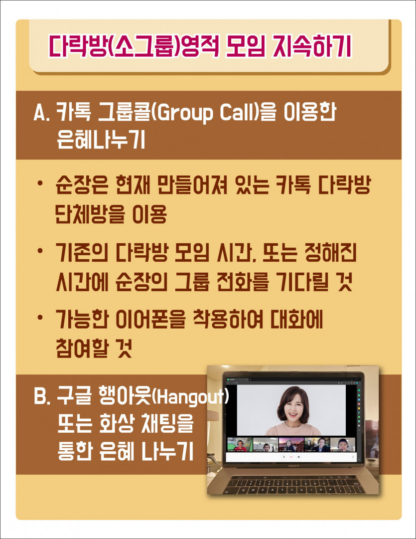 온라인 예배 마음가짐과 준비 그리고 온라인 다락방 모임 가이드 페이지 정보 게시판 리스트 옵션 수정 삭제 본문 첨부파일 온라인소그룹가이드낮은버전.pdf (206.6K) 20회 다운로드 | DATE : 2020-03-20 00:00:00 관련링크 http://온라인소그룹가이드낮은버전.pdf 648회 연결 이전글 목록 다음글