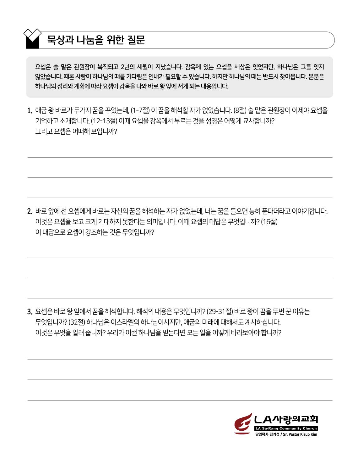 2023 2월 넷째 주 - 하나님의 때에 하나님의 방법으로 페이지 정보 본문 첨부파일 2023년 2월 4째주 다락방 교재.pdf (128.6K) 84회 다운로드 | DATE : 2023-02-24 16:32:33 이전글 목록 다음글