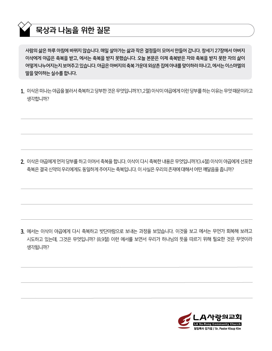 2022 6월 첫째 주 - 반복되는 실수 페이지 정보 본문 첨부파일 2022년 6월 1째주 다락방 교재.pdf (118.2K) 85회 다운로드 | DATE : 2022-06-03 16:19:02 이전글 목록 다음글