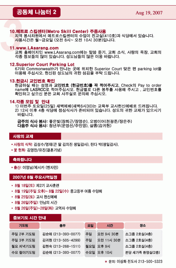 주후 2007년 8월 19일 교회주보 공동체 나눔 페이지 정보 게시판 리스트 옵션 수정 삭제 본문 - * lasrcc님에 의해서 게시물 이동되었습니다 (2009-01-10 02:58) 이전글 목록 다음글