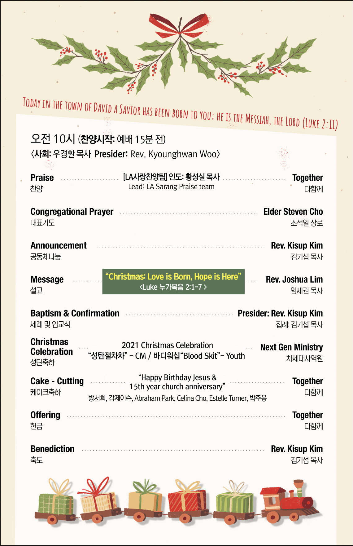 주후 2021년 12월 25일 교회공동체 나눔(성탄축하예배)
