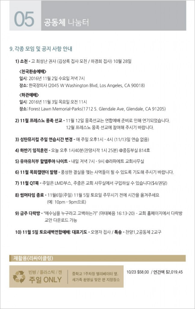 주후 2016년 10월 30일 교회공동체 나눔