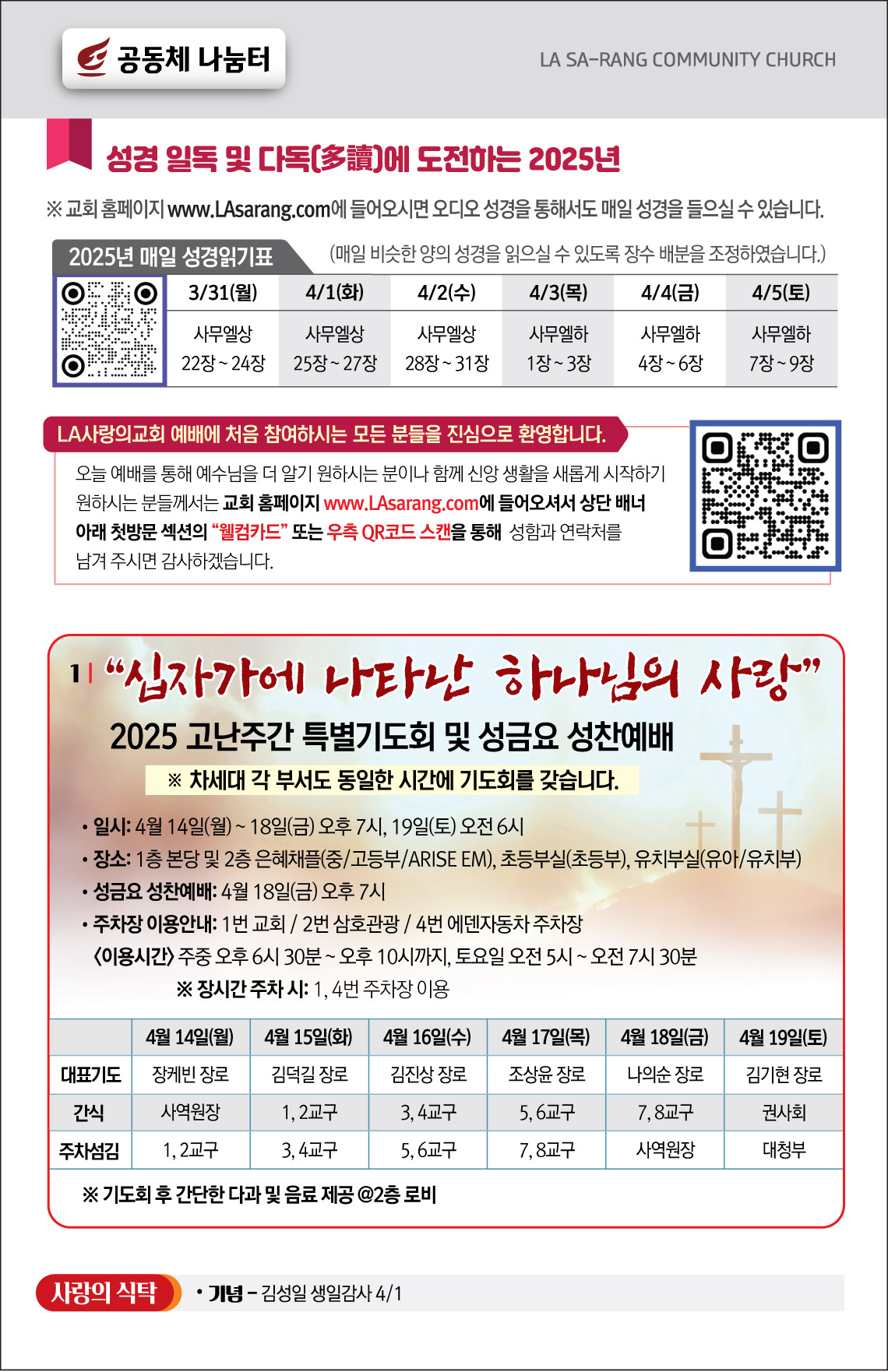 주후 2025년 3월 30일 교회공동체 나눔